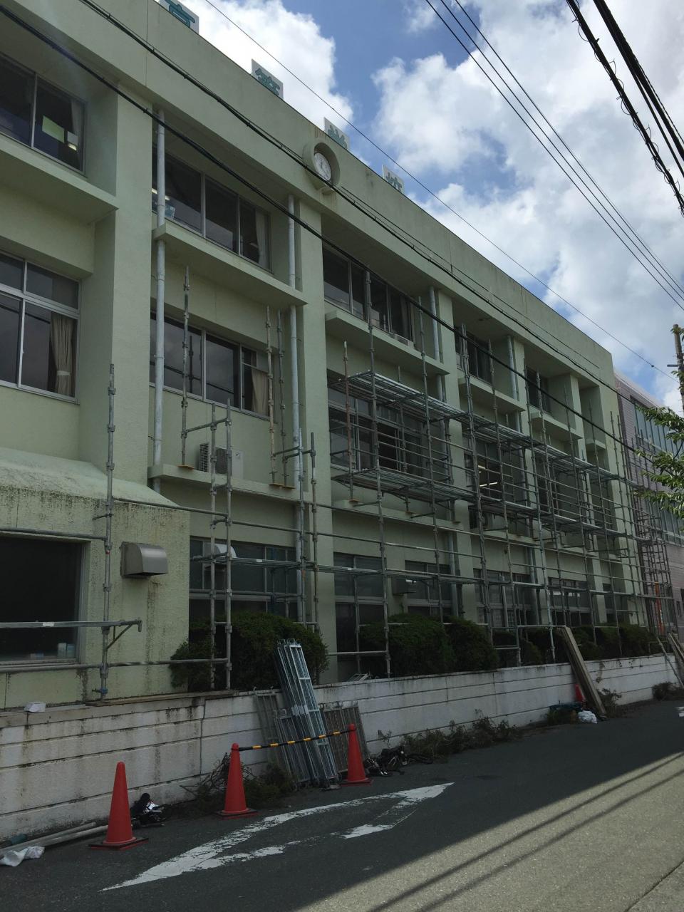 今日は高校の改修用足場を組んでます! 植木が沢山あって大変です(⌒-⌒; )